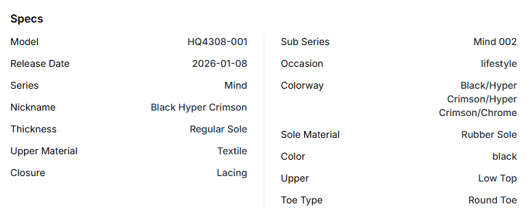 The Nike Mind 002 'Black Hyper Crimson' evolves the comfortable silhouette with a bold, technical aesthetic. Featuring a uniquely textured upper in sleek black with vibrant crimson accents, this shoe prioritizes plush comfort and support. Its futuristic design offers a sophisticated, refined edge for modern daily recovery.
