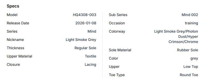 The Nike Mind 002 'Light Smoke Grey' blends futuristic innovation with a minimalist aesthetic. This version features a breathable knit upper and 22 sensory foam nodes designed to enhance the mind-body connection. With its refined grey palette and chrome accents, it creates a sophisticated and stylish modern silhouette.