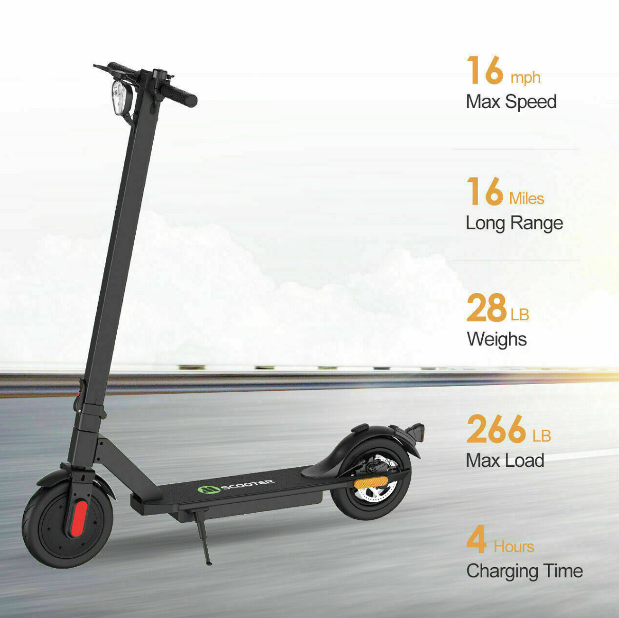 - LONG BATTERY LIFE - The portable motorized scooter takes 4 hours to charge, and it has a battery life that gives you a 12-14 mile range.
